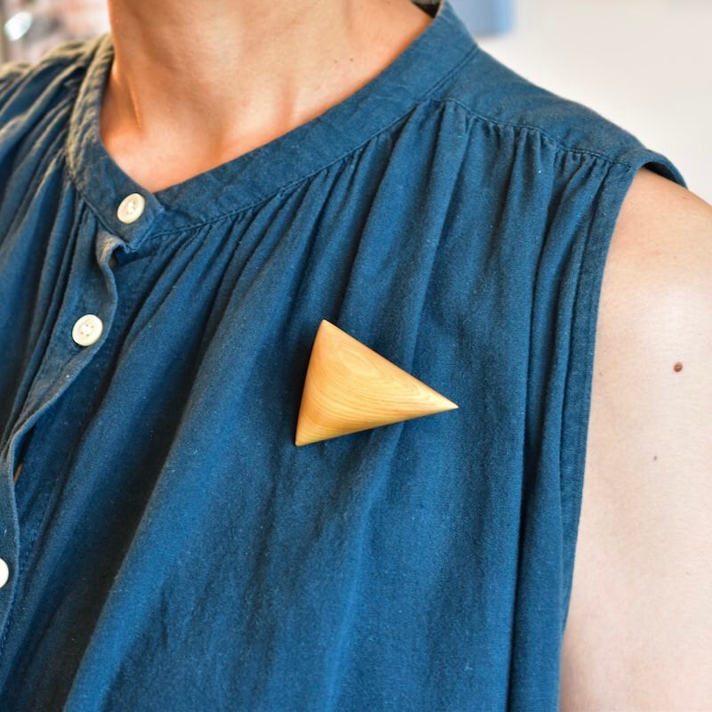 【ニワトコ・ウッド】トライアングルな 松の木の ブローチ 無垢材 オイル仕上げ 木のブローチ 【送料無料】