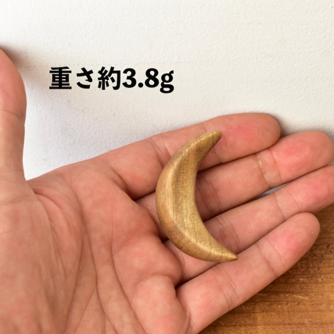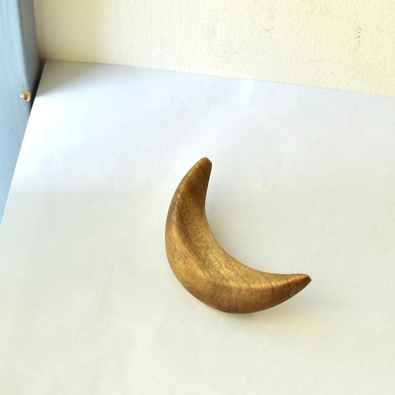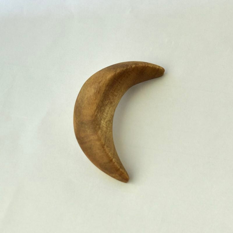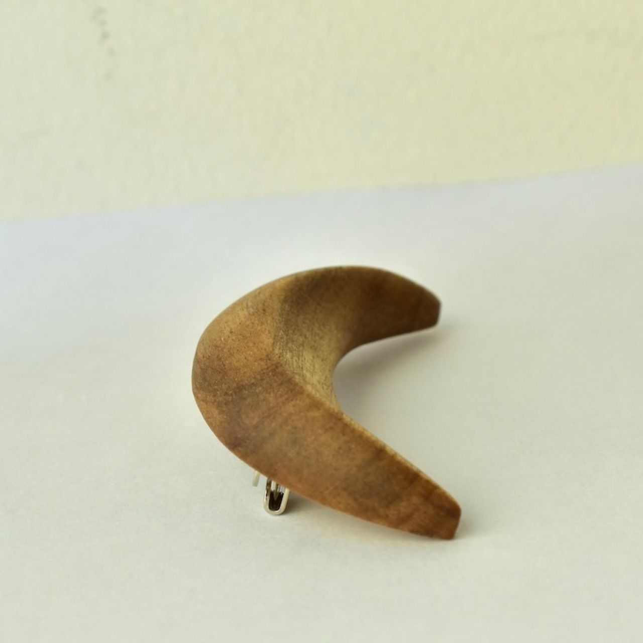 【 ニワトコ・ウッド 】 三日月ウッドな朴木のブローチ【C】 オイル仕上げ バッジ アクセサリー 無垢材 木のブローチ