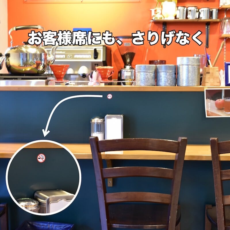 小さめなので、お店ではお客さんの席ひとつひとつにさりげなく貼ってもいいと思います。
