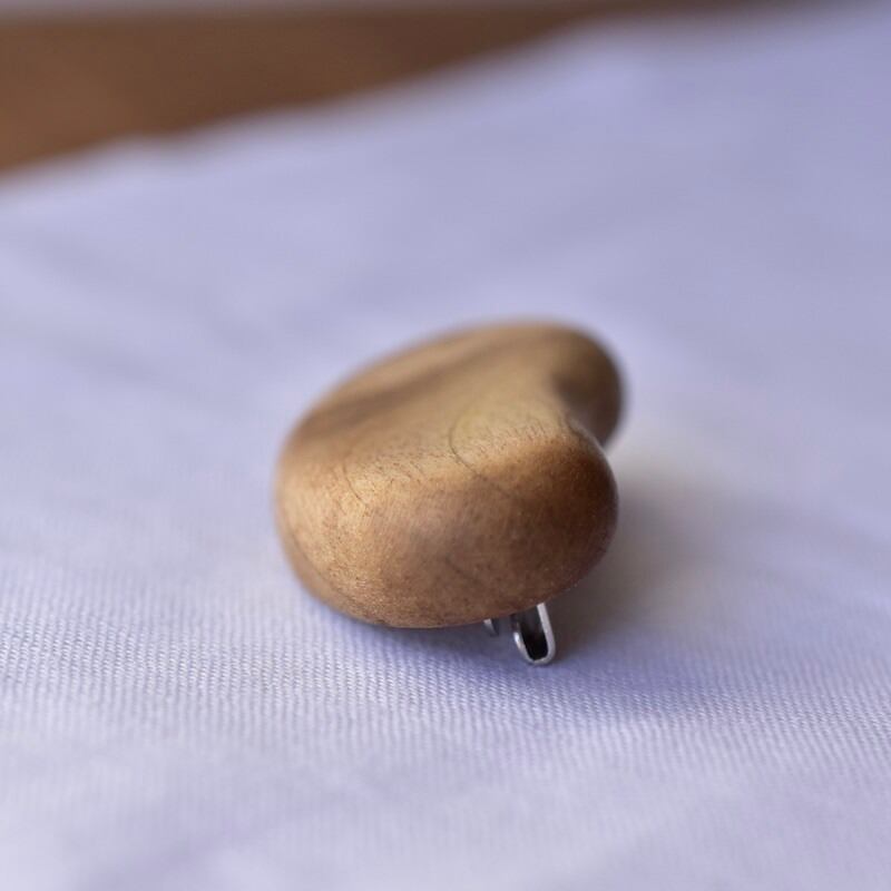 【 ニワトコ・ウッド 】 ビーンズ・ウッドなブローチ 【B】 朴 木のブローチ 約3.7cm ハンドメイド木工 無垢材 オイル仕上げ 木のブローチ バッジ ナチュラルウッド 素朴 さりげない おしゃれ 大人 メール便送料無料