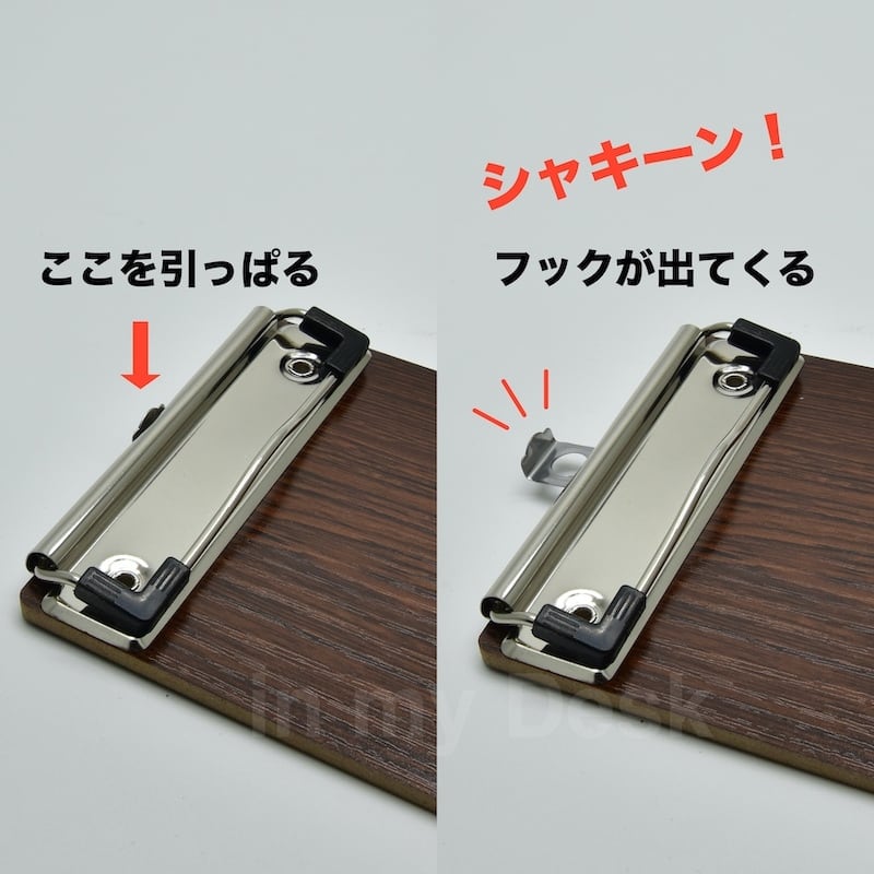 in my Deskのクリップボードは木目調で高級感もあって、イカしています。
